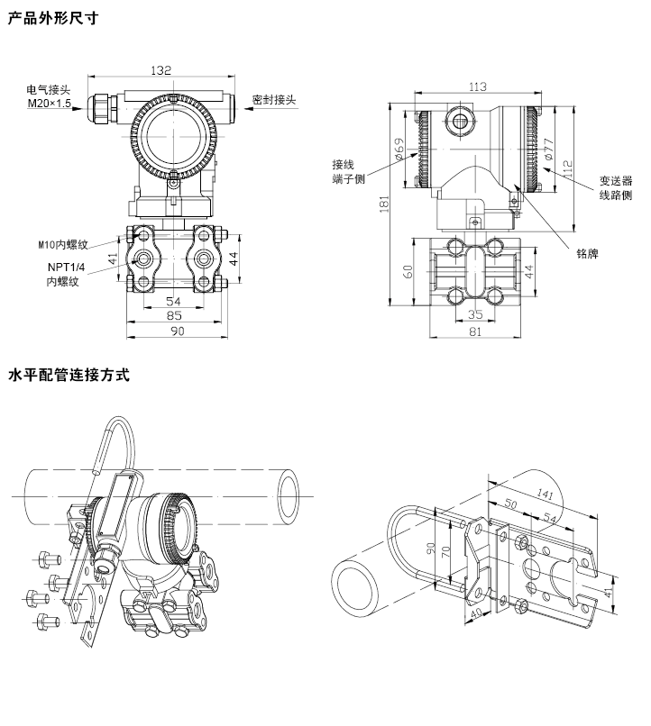 | 2、重量凈重:約4kg(無安裝支架,過程連接配件) |